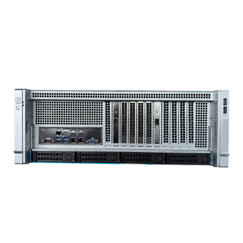 廣州天翱機架式GPU服務器,型號為TA-W480A,高度為傳統(tǒng)4U機架式服務器,深度為800mm??蓴U展10路雙寬4090,可廣泛應用于人工智能/深度學習,高性能計算(HPC),云游戲;分子動力學模擬。平臺采用最新GEN5.0,MCIOx8接口,最大保證GPU跟CPU之間通訊損耗降到最低,發(fā)揮顯卡的性能。供電支持4個CRPS,工作模式2+2,最大負載支持5400瓦特。