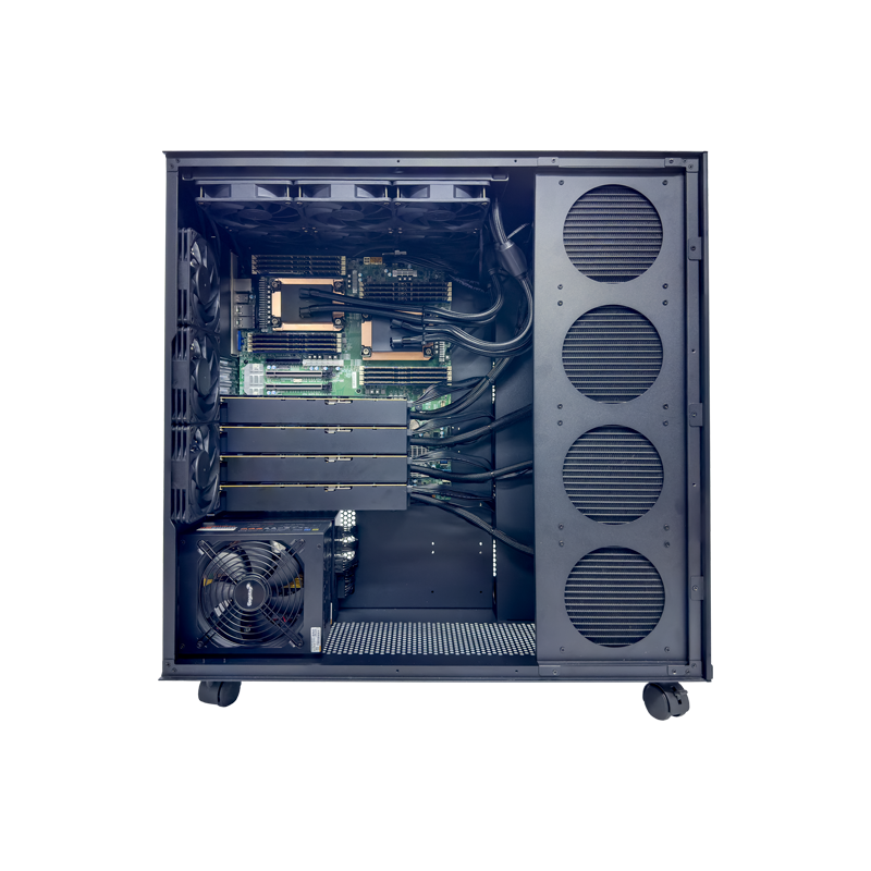 廣州天翱TA-W4608,搭配雙路3rd Gen Intel? Xeon? Scalable 系列處理器,單機(jī)最高支持80核心160線程。該工作站整機(jī)采用液冷式散熱,可以更有效地降低設(shè)備的溫度,提高設(shè)備的性能和壽命,噪音更低,可以提供更加安靜的工作環(huán)境,支持PCI-E 4.0 上的2個(gè) M.2 用于閃存啟動(dòng)和存儲。電源采用2400W雙電協(xié)同工作,足以帶4路4090顯卡。平臺可應(yīng)用于人工智能/深度學(xué)習(xí),高性能計(jì)算(HPC),云游戲;分子動(dòng)力學(xué)模擬等領(lǐng)域。