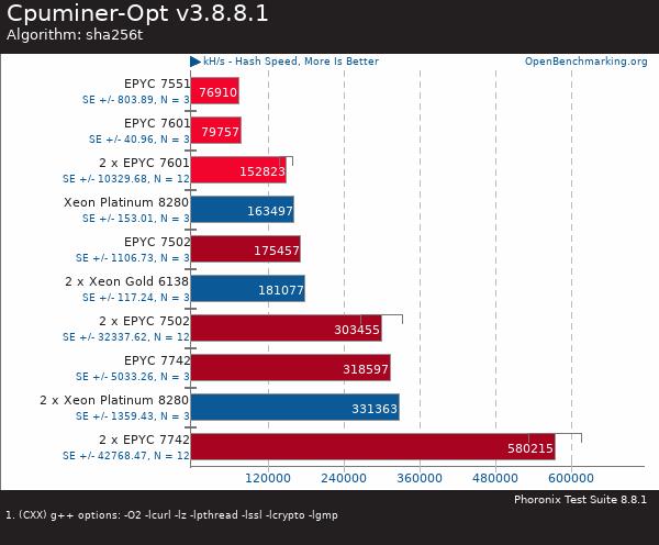 下面的性能測試都是面向服務(wù)器、數(shù)據(jù)中心的,跟我們常用的桌面X86處理器跑分不同,也沒啥可比性,就不一一解釋了,感興趣的可以比較下AMD、Intel雙方的成績,注意看下有些成績是越低越好就行了。