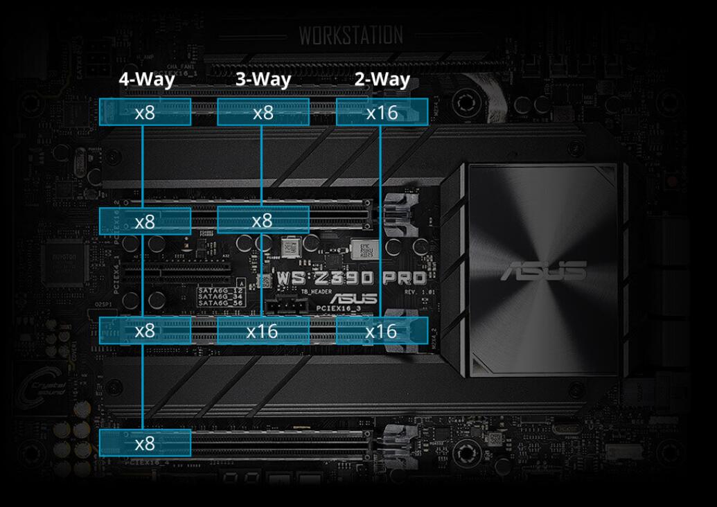 WS Z390 PRO 工作站主板可容納4張雙槽顯卡,并支持 NVIDIA